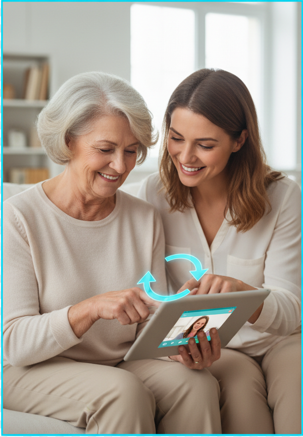 «¡Increíble! Pensé que nunca entendería mi tablet, pero con muchísima paciencia me enseñaron. Ahora hago videollamadas con mis nietos. ¡Son ángeles!»